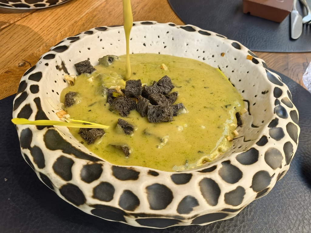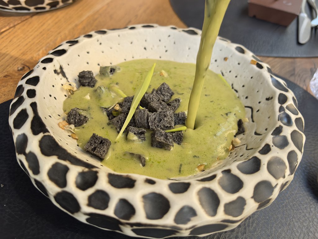 Un restaurant deschis de curând pe Zăgazului, chiar unde începe Șoseaua Pipera din Caranfil, lângă alte două restaurante, Amoom și Apio – nou și acesta din urmă. Mare, cu terasă mare, foarte bine amenajat, de niște arhitecți care știu bine meserie și cărora patronii le-au dat mână liberă la cheltuieli. Aproape sigur sunt cei care au restaurantul din Candiano Popescu, la Parcul Carol, cu același nume scris caraghios, ca să fie originali cu orice preț. Mâncarea surprinzător de bună – o să revin cu o descriere mai detaliată și cu alte poze. Când am văzut numele și mi-am adus mâncarea destul de banală de la B3ton de la Parcul Carol, am crezut că va fi la fel. Dar nu, pe acesta l-au poziționat de la început mult mai sus. Să vedem cât succes va avea, pentru că era complet gol când am fost noi, eram singuri în ditamai restaurantul. Serviciul bun, ne-a plăcut de amândoi cei care s-au ocupat de noi, și chelnerul deschis și plăcut, și zâmbitoarea asiatică. (George Butunoiu – august 2025)