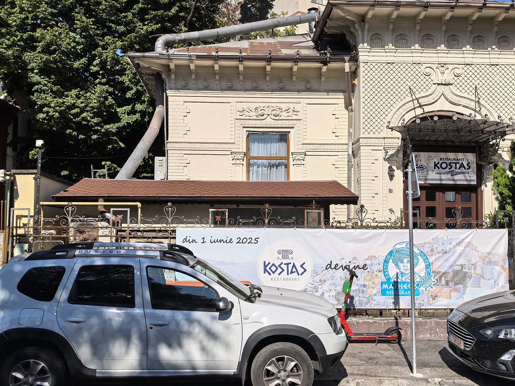 Am înțeles că sunt doi frați, au început împreună businessul. Cred că s-au cam certat, și au decis să se despartă. Chef Kostas – așa se semnează – de la care se trage numele restaurantului, s-a mutat cu nume cu tot în Sfântul Ștefan, fratele lui rămânând aici. Dar cu un nou nume, Matheos – tot restaurant grecesc. Pe casă încă nu au pus noul nume, e tot Kostas, însă pe gard scrie despre schimbarea de nume, începând cu 1 iunie 2025.