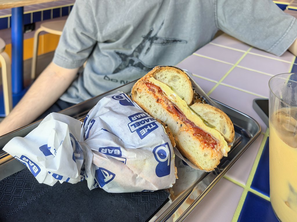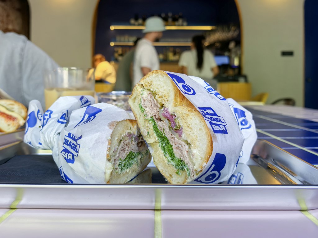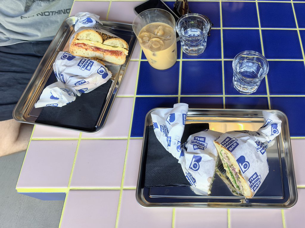 The Bagel Bar este o mică unitate de tip grab-and-go specializată în bagels, cu un meniu limitat la câteva variante standard – somon, pastramă, brânzeturi, ou sau opțiuni vegetariene. Preparatele sunt corecte, fără pretenții, orientate mai mult spre conveniență decât spre experiență culinară propriu-zisă.